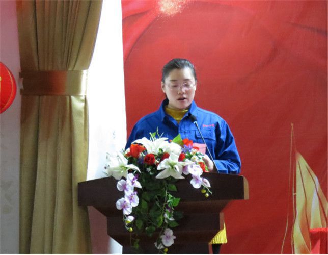 表彰大會(huì)上醫(yī)用公司董事長(zhǎng)楊棉宣讀《華寶集團(tuán)開展向2017年度勞動(dòng)模范、先進(jìn)工作者、先進(jìn)集團(tuán)學(xué)習(xí)的通知》。